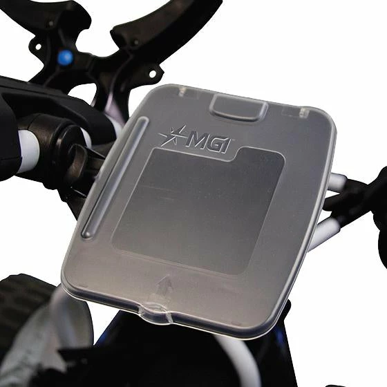 MGI Scorecard Holder for QUAD & ZIP Series caddies. The Scorecard Holder keeps your card and playing papers crisp, clean and waterproof throughout the round. The adjustable position means you can have the holder at any angle that suits you without it getting in the way or collapsing.
